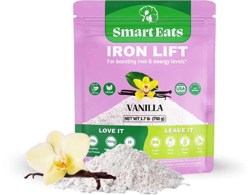 Boost energy levels without the miserable side-effects of other iron solutions. Make high iron drinks, smoothies, and juices for anemia and iron deficiency. Gentle and non-constipating iron powder that supports digestion and maximizes absorption. Blood-building vitamins help to combat anemia, and protein helps to support ferritin levels.