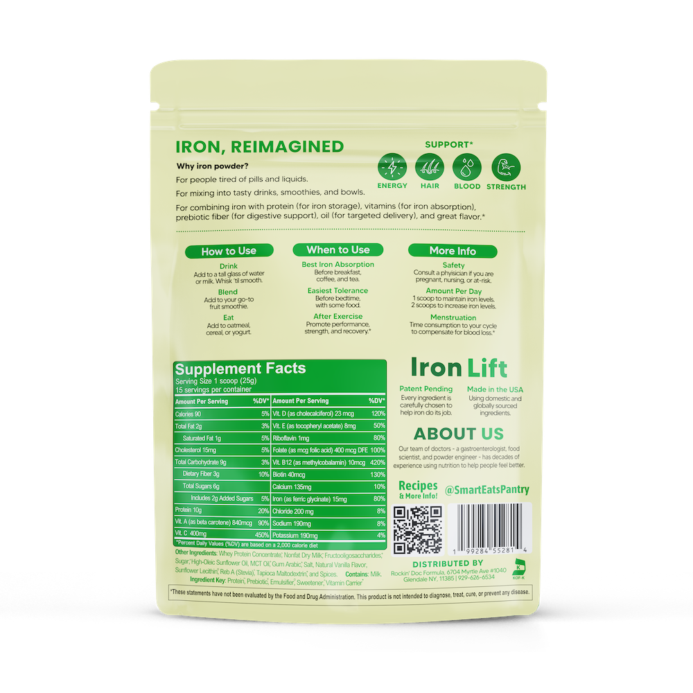 🥛 TASTY DRINKS, SMOOTHIES, BOWLS – Mix this powder into a drink, smoothie or bowl (yogurt, cereal, oatmeal) for a tasty, high-iron treat. Yum.