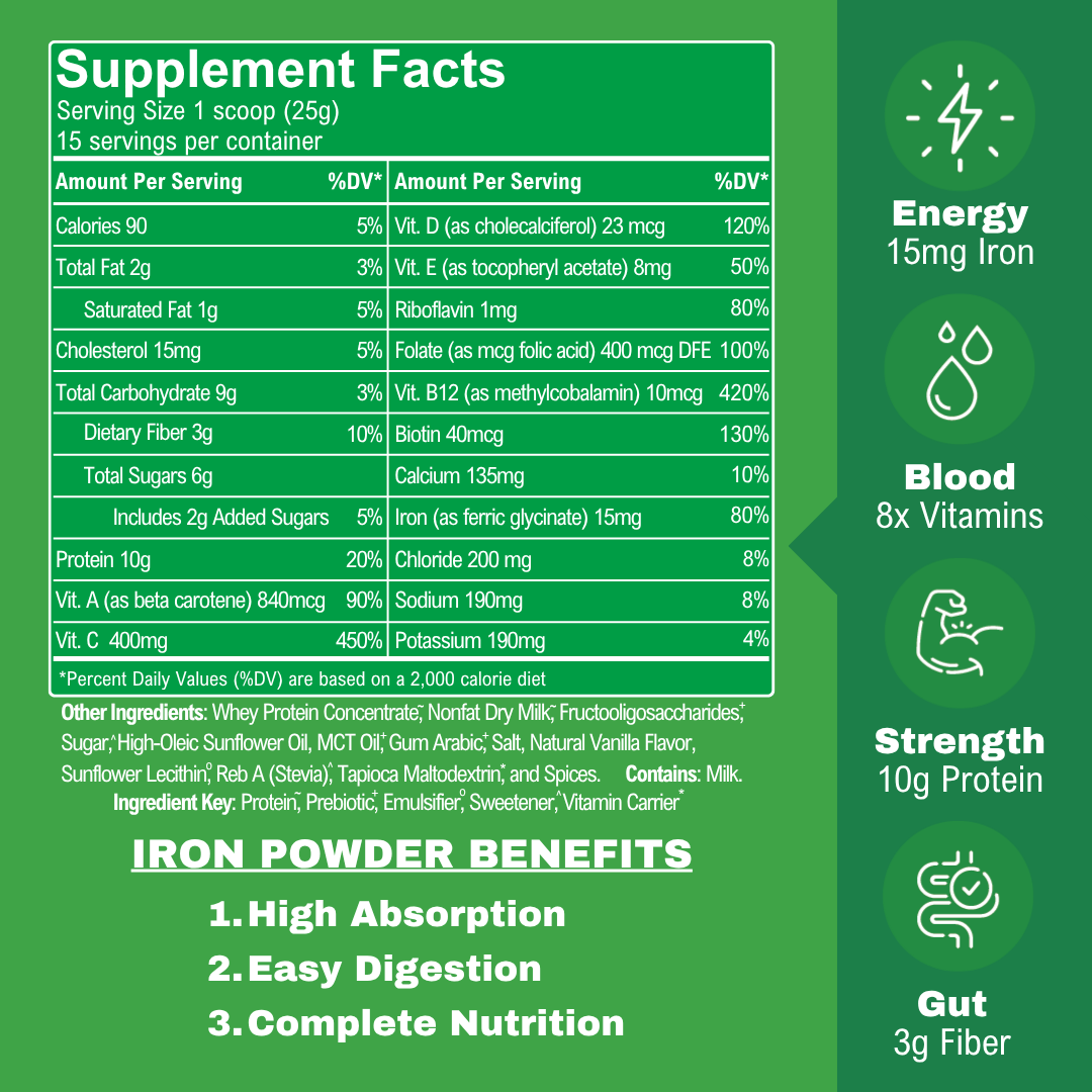 Iron Powder - Highly Absorbed, Avoids Side Effects - Vanilla Whey